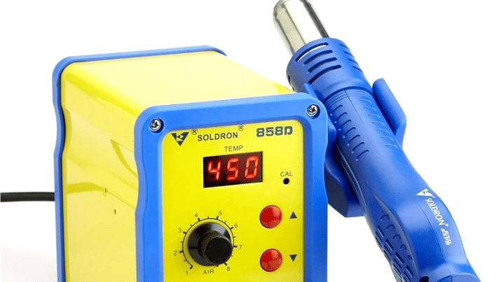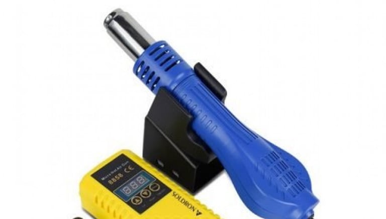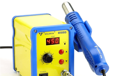 Soldron 8858 Portable Hot Air Blower is the newest, most efficient portable solution for Hot-Air Soldering and Rework Applications. The best and most affordable gear for Mobile Repairers and PCB to work on the go. Small enough to fit into even the tightest of workspaces, with digitally set-able temperature and fan speed and also the latest technology of sleep mode activation when placed in the cradle.