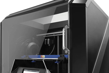 The enclosed print area supports a build volume of 10 x 6 x 6.7". With a 50-300-micron layer resolution, the 3D45 can print