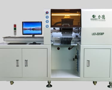 The carrying table of LED-2208P adopt Japanese Panasonic Servo motor and imported Rail which ensure its movements with excellent stability and high precision. X,Y Axis driven by Panasonic Servo Motors with combination with Linear rail from Taiwan ,make the placement components on board with strong abilities : Higher precision, Faster Speed, High-Class stability