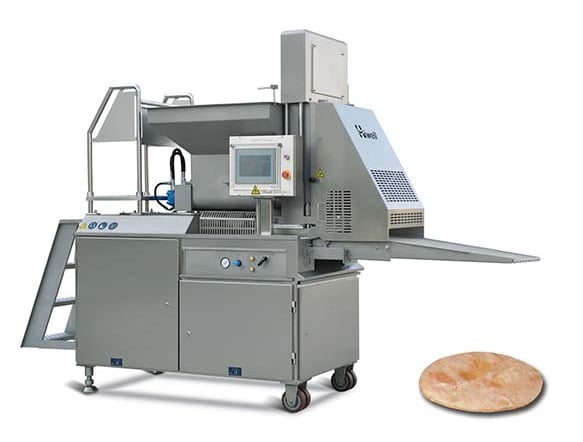 Metal mold plates have excellent wear resistance, long service life and less material leakage. The food forming equipment is able to process a wide range of products including meat, fish, potatoes and vegetables as well as bakery.The touchscreen control system features new operation interface, multiple languages input, easy parameter setting, auto data storage, auto fault diagnosis, EtherCAT bus control and high-speed data communication.